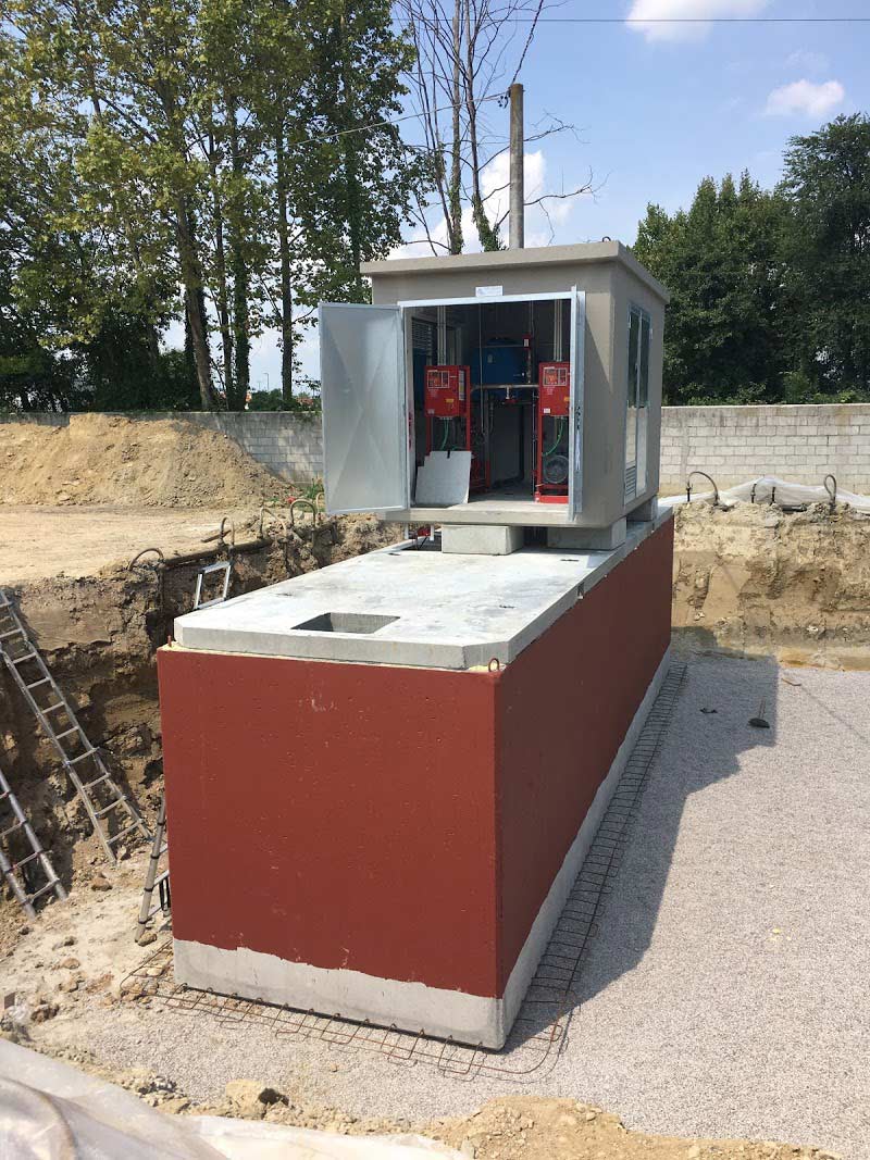 The monolithic prefabricated concrete tanks can be supplied complete with a pressurization system inside the Service Compartment-Technical Room, which is fully equipped hydraulically and electrically, with the issuance of a certificate of declaration of conformity according to Ministerial Decree 37/2008.