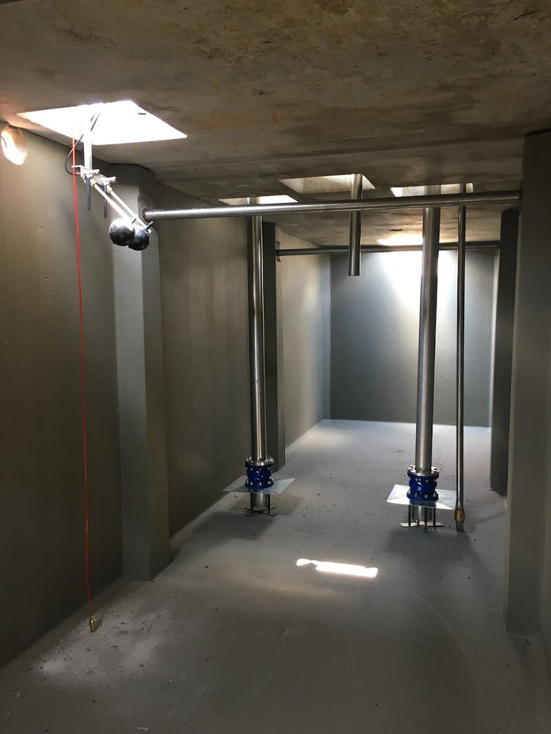The Suction Lift system consists of an underground water reserve and a technical room complete with a suction lift fire-fighting unit positioned at a higher elevation that does not allow 2/3 of the useful volume to be above the axis of the main pumps. The proposed fire-fighting water storage reserves are monolithic reinforced concrete structures and can be installed underground and suitable for heavy traffic (Class 1 vehicles); the underground fire tanks are connected to each other through connection holes positioned at the bottom, in which various types of fittings with watertight gaskets, stainless steel pipe stubs or sleeves, EPDM, PVC, HDPE, etc., are inserted.