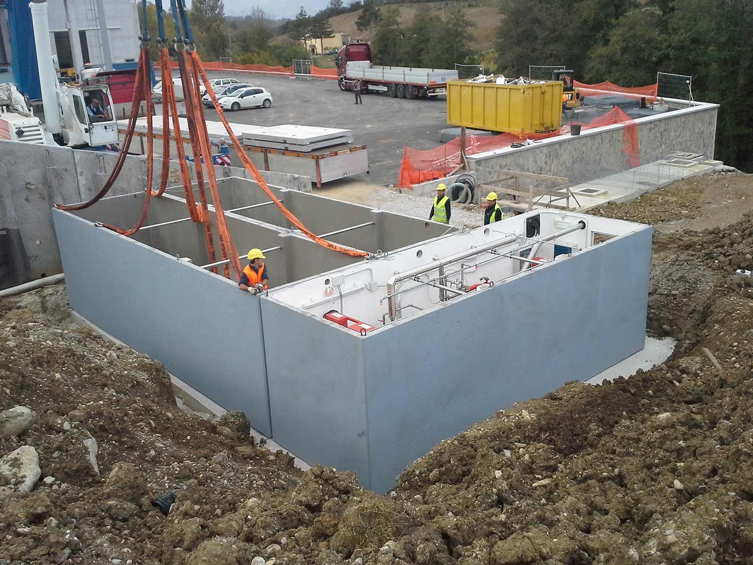 Implementing a fire-fighting system with prefabricated underground tanks is a fast, safe method that offers significant savings in construction time and ensures high safety levels for workers on-site.