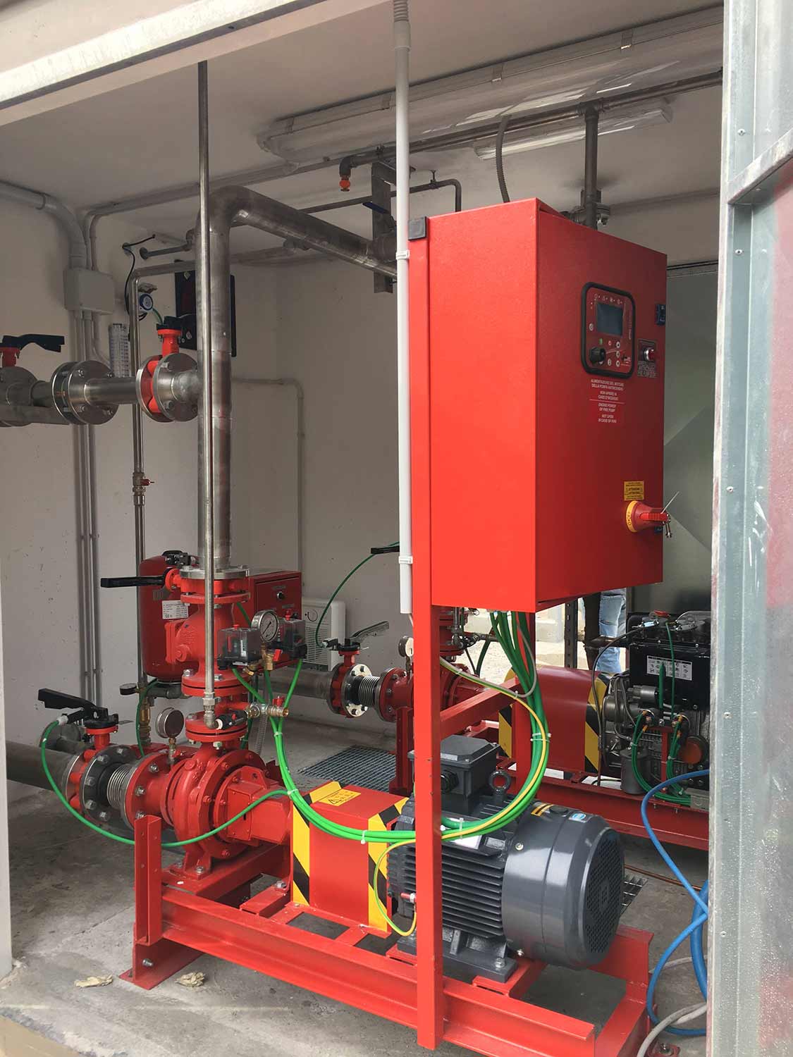 Assembled in a painted sheet metal enclosure with IP54 protection rating, built according to current CEI standards and compliant with the requirements of UNI EN 12845.