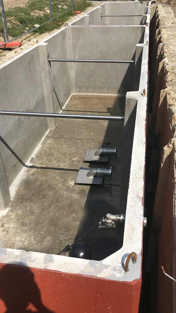 Precast firefighting tanks from 10 to 900 cu m. can be underground or positioned above ground; underground firefighting tanks are connected to each other through connection holes where PVC fittings with watertight gaskets, or stainless steel stubs or sleeves, are inserted.