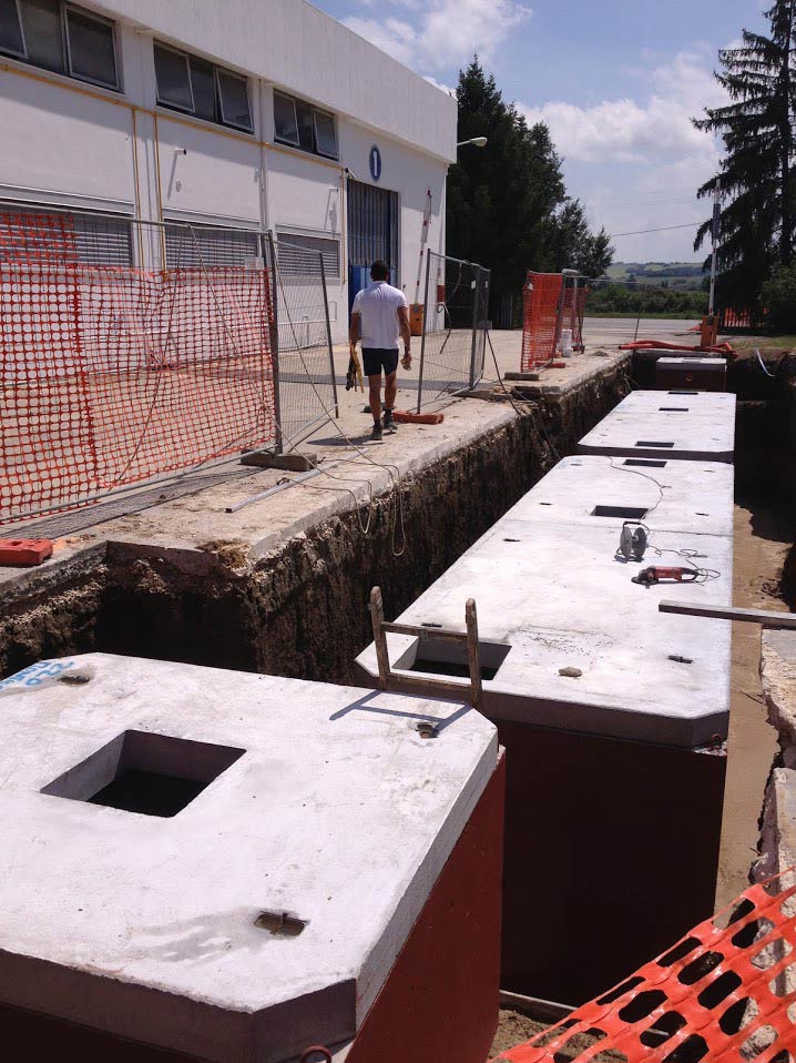 - Accumulation tank: sized according to the draining surface area and current regulations, it retains the first flush volume for the time necessary for pollutant sedimentation.