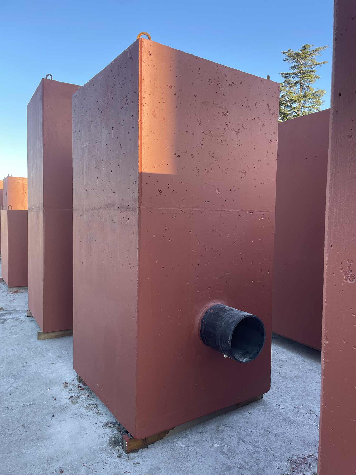 - Prefabricated monobloc tank designed to house pumps, internal piping, and valves, without the need for any dedicated valve chamber