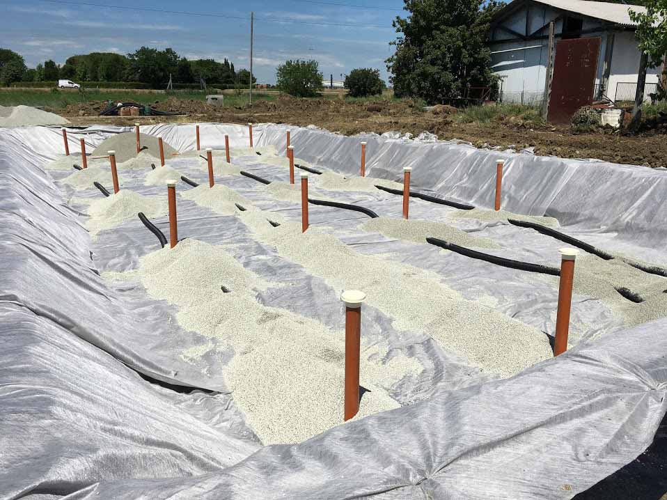 - Collettori di drenaggio refluo depurato in pvc diam.110 mm, compresi camini di aerazione;