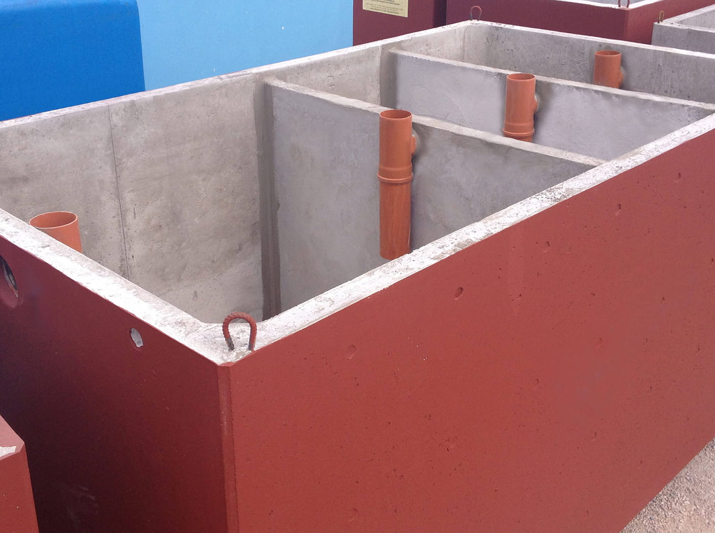 Le Vasche Settiche Bicamerali/Tricamerali prefabbricate in cemento sono realizzate con una successione di scomparti collegati tra di loro da dispositivi atti a limitare i passaggi di fanghi e schiume. Questo tipo di fosse biologiche sono realizzate a 2 o 3 camere con rapporti volumetrici tra i diversi scomparti, 2:1 e rispettivamente 2:1:1, è prevista una tubazione di esalazione per la fuoriuscita dei gas ad una quota adeguata per evitare disturbi olfattivi.