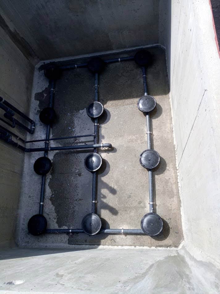 - diffusori a disco a microbolle con membrana in EPDM completi di tubazione perimetrale di mandata aria;