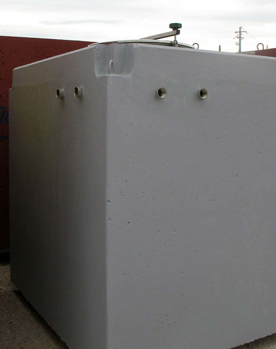 Le Cisterne prefabbricate in cemento armato utilizzate per lo stoccaggio delle acque potabili prodotte dalla nostra azienda sono progettate e costruite per essere interrate completamente, sono carrabili per automobili, mezzi agricoli, autocarri ,mezzi pesanti, traffico di prima categoria. Questo tipo di serbatoio di accumulo dell'acqua potabile è carrabile anche se interrato a grandi profondità, (interramento superiore a un metro di materiale di riporto). La protezione delle pareti interne e il contenimento dell'acqua per il consumo umano è garantita dal trattamento interno certificato e garantito (resina epossidica certificata) applicato e posato a regola d'arte dai nostri operai specializzati. E' possibile raggiungere grandi volumi di riserva idrica (accoppiando le nostre vasche modulari monolitiche) o anche con un solo monoblocco visto la produzione della vasca prefabbricata più grande d'Italia "fino a 69 mc" in un unica soluzione.