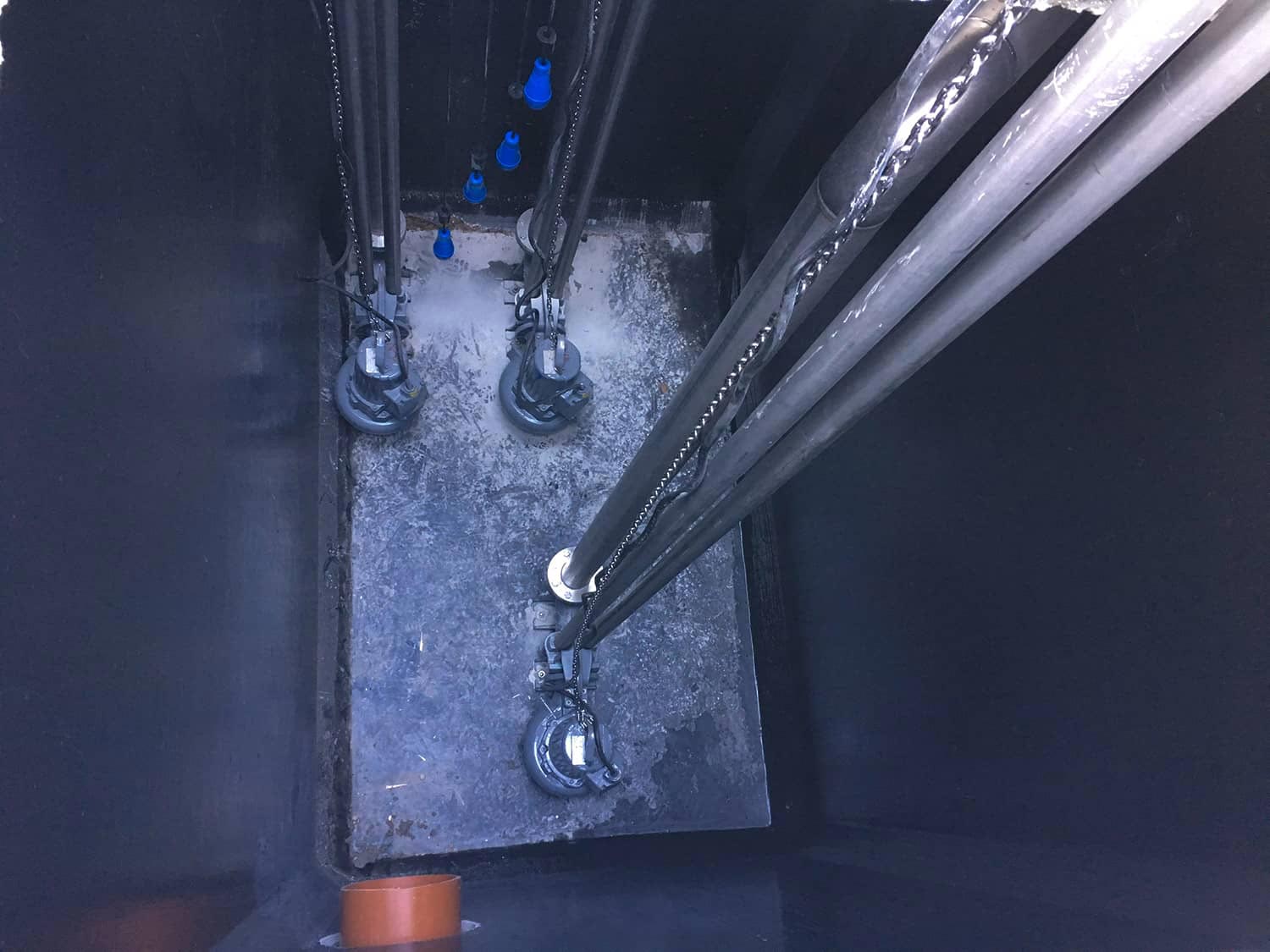Le stazioni di sollevamento composte da base e prolunghe vengono sigillate e bloccate con piastre di acciaio come si può notare dalle nostre foto.