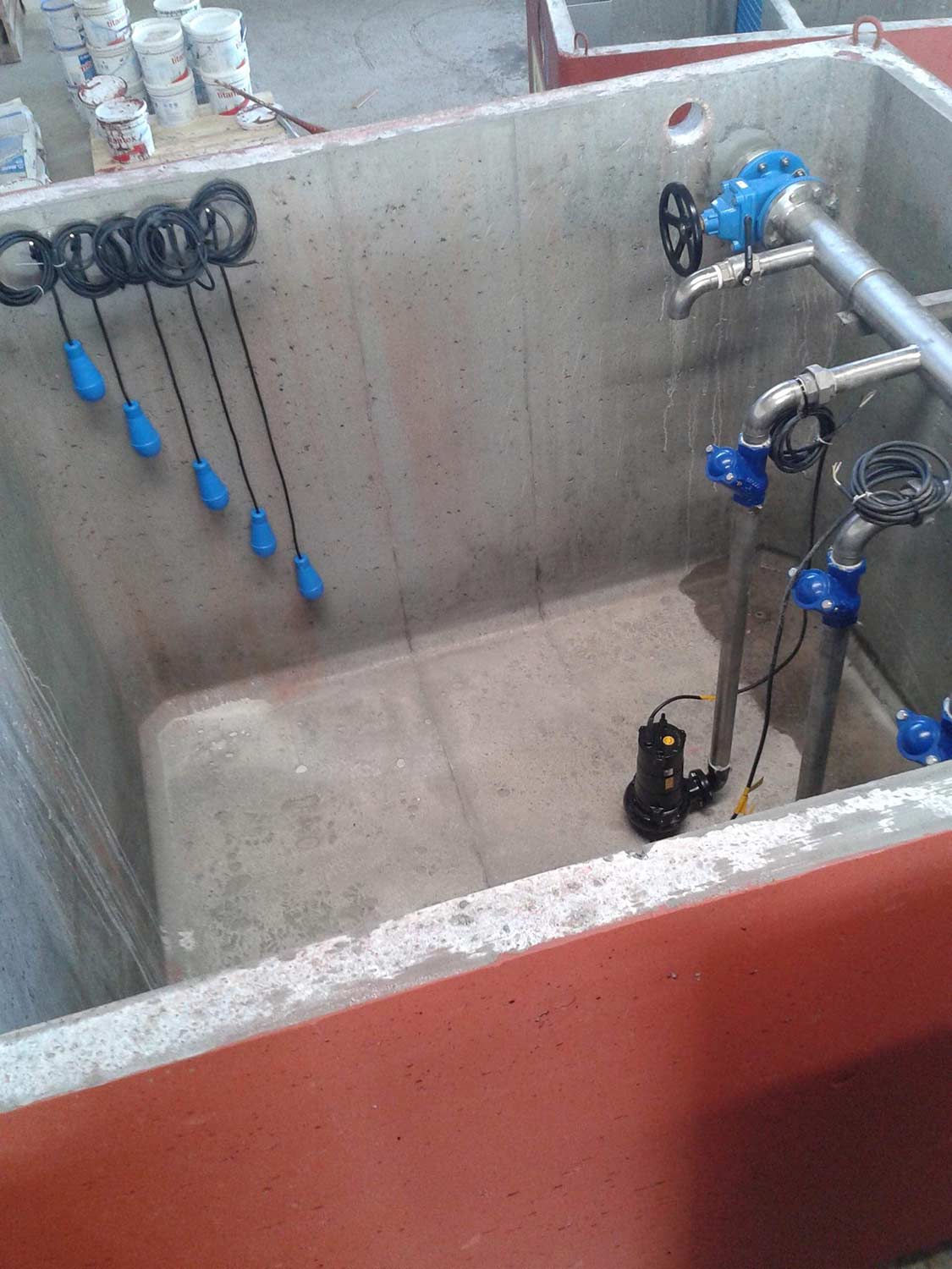 Le stazioni di sollevamento prefabbricate in cemento vengono trattate internamente ed esternamente con prodotti impermeabilizzanti idonei per il contenimento di acque luride o acque bianche.