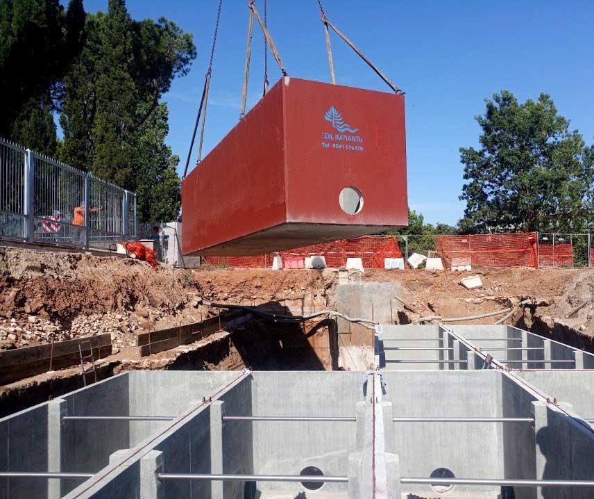 - Manicotti in PVC a tenuta idraulica inseriti sulle pareti delle vasche per innesto tubazioni ingresso e scarico (VLL).