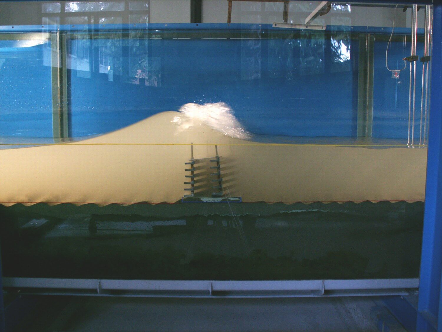 Le prove effettuate sono di tipo 2D e 3D, a fondo fisso (senza sabbia), e a fondo mobile (con sabbia sul fondale), utilizzando modelli in varie scale della barriera WMesh.