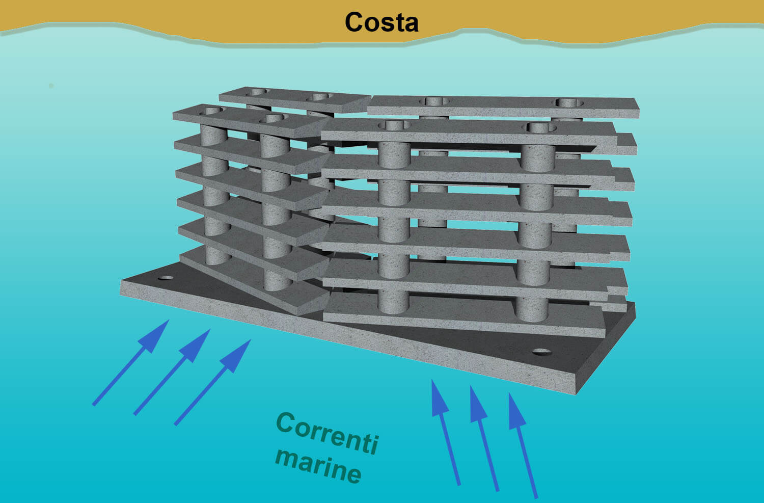 Le tradizionali scogliere composte da massi comportano effetti collaterali dannosi al litorale, al fondale e all'ambente marino circostante.