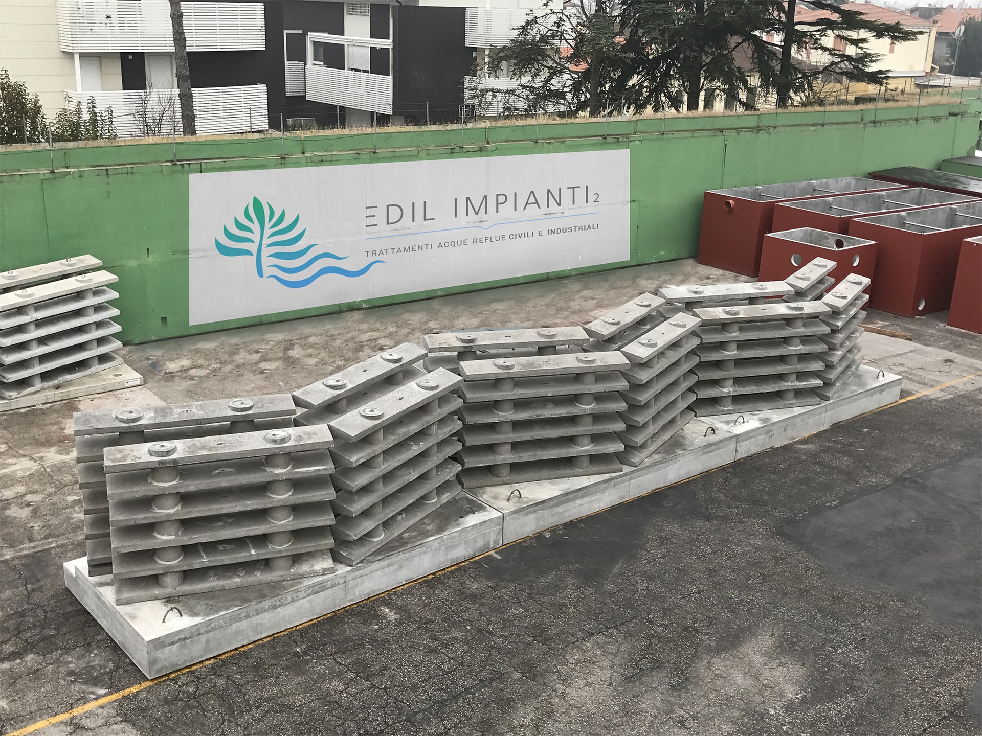 La struttura "WMesh" è composta da moduli prefabbricati in cemento armato prodotti dalla Edil Impianti2 con materiali certificati CE.